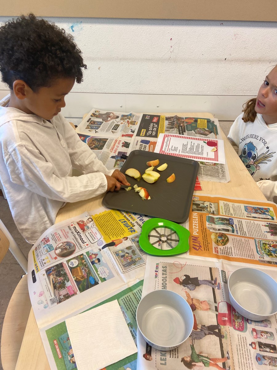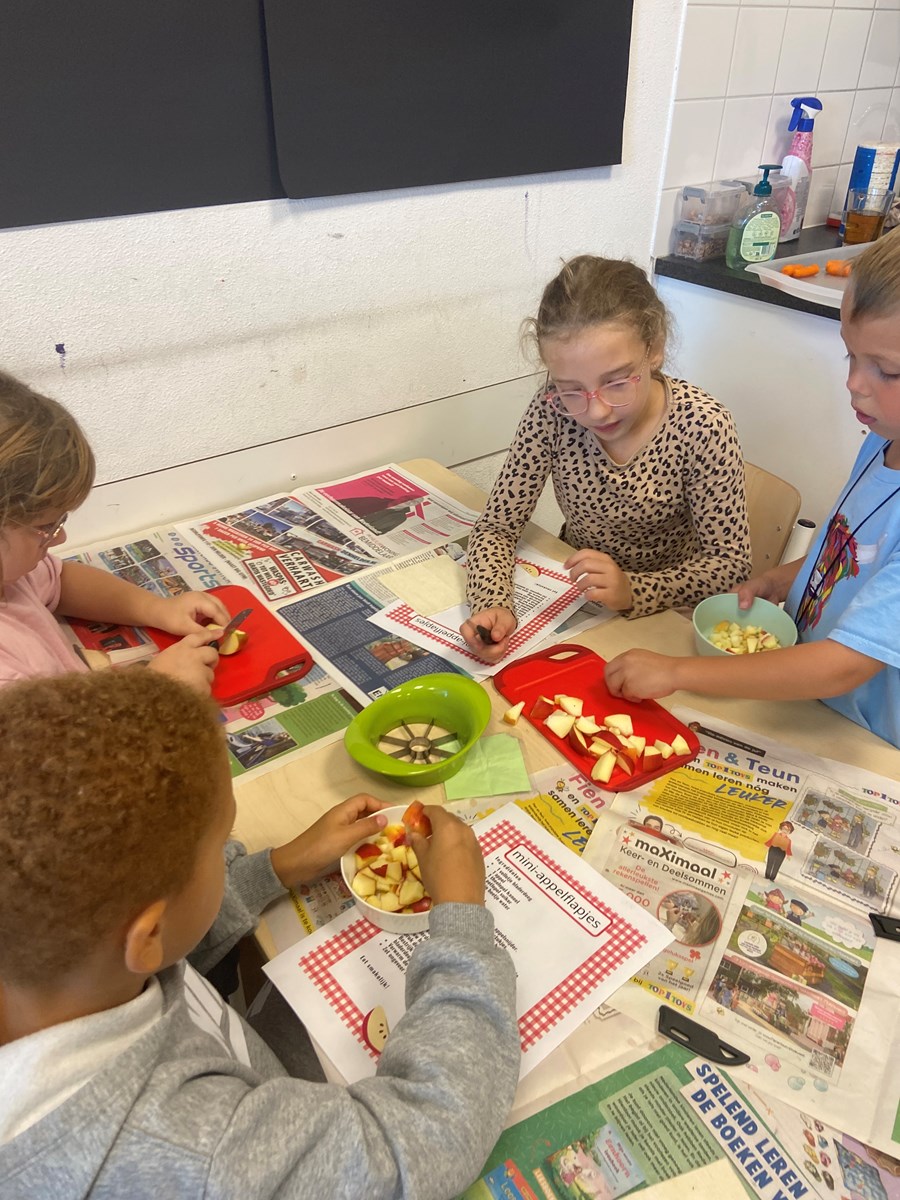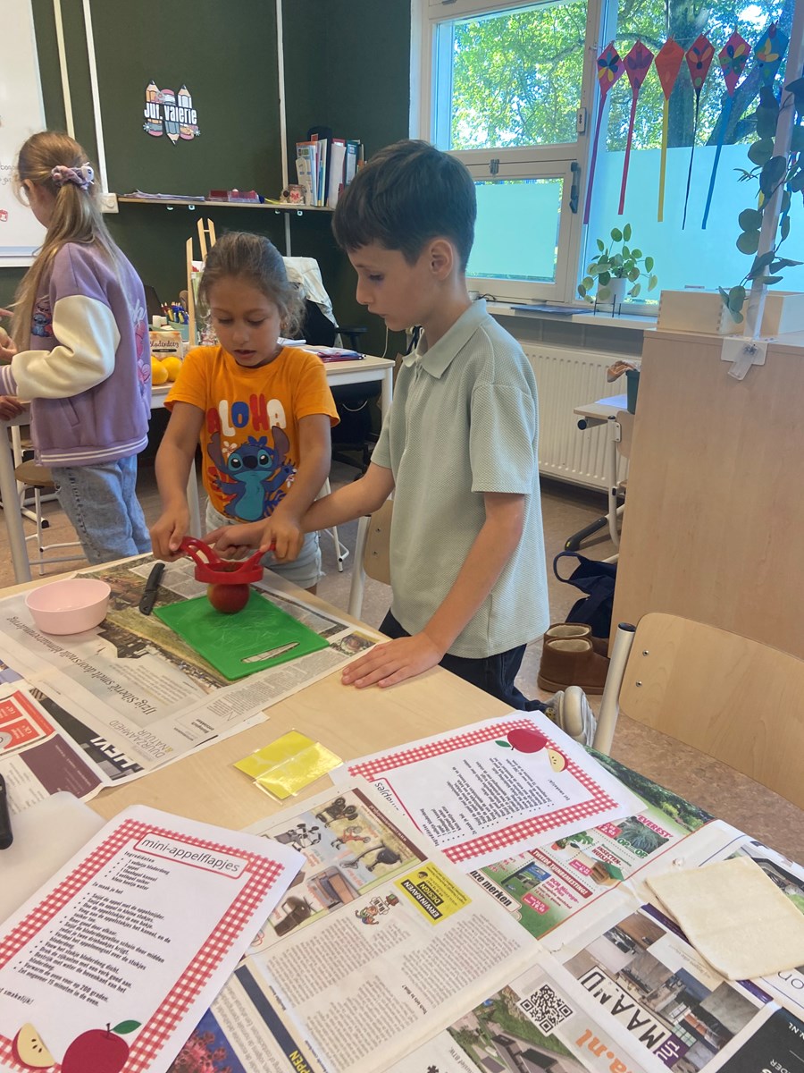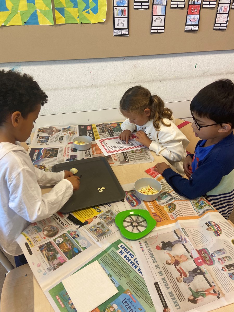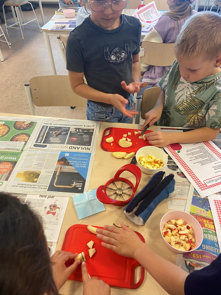 Naast dat het gezellig en smakelijk was, was het ook heel leerzaam. De kinderen kregen namelijk een tekst over het maken van een appelflap. Zo leerden ze dat dit een instructietekst is, die we ook wel een recept noemen.