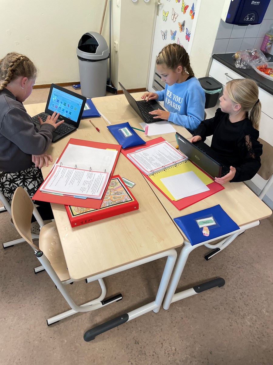 Taal: Er wordt hard gewerkt aan de prentenboeken. De kinderen hebben een verhaallijn bedacht met hoofdpersonen, bijpersonen, een probleem en een oplossing. Er wordt nu gewerkt aan een kladversie van het prentenboek.