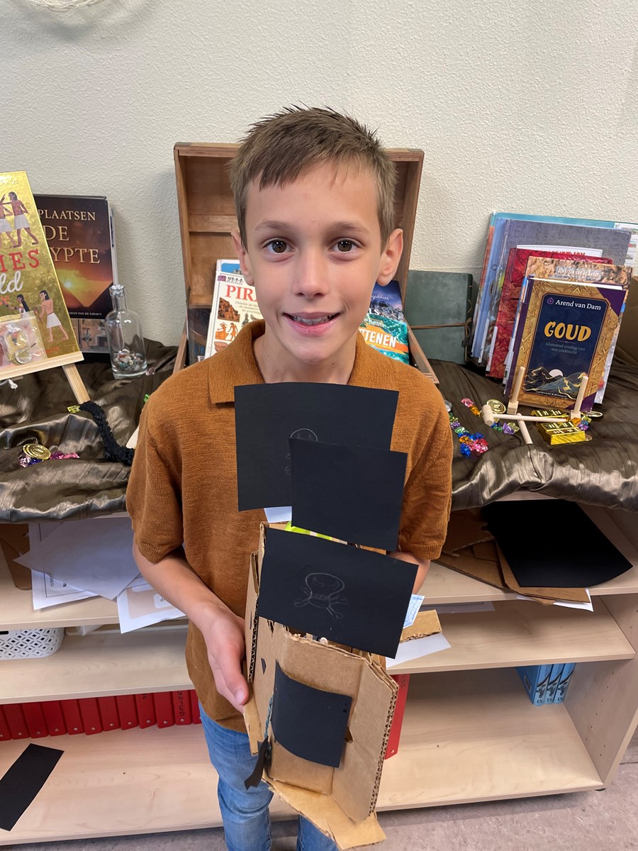 Thema: Bij de verwerkingsopdrachten van het thema is er gewerkt aan het maken van een piratenschip. Hierbij zijn er labels geplaats bij belangrijke onderdelen van het schip. Momenteel zijn de kinderen bezig met een onderzoek naar een persoon uit de geschiedenis. Hierbij worden verschillend bronnen gebruikt om informatie te zoeken. De informatie wordt op een later moment verwerkt in een ’schatkist’ over het leven van de persoon uit de geschiedenis.