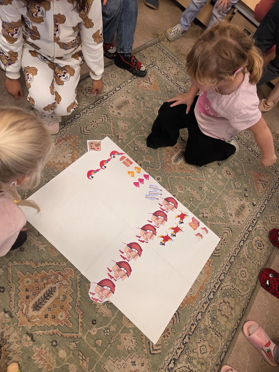 In de grote kring hebben wij gezamenlijke momenten waar wij aandacht besteden aan taal- en rekenactiviteiten.  Zo hebben wij binnen het thema piraten en met behulp van Semsom een staafdiagram leren maken.
