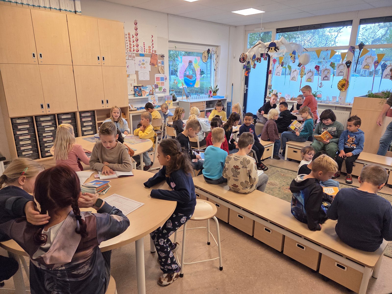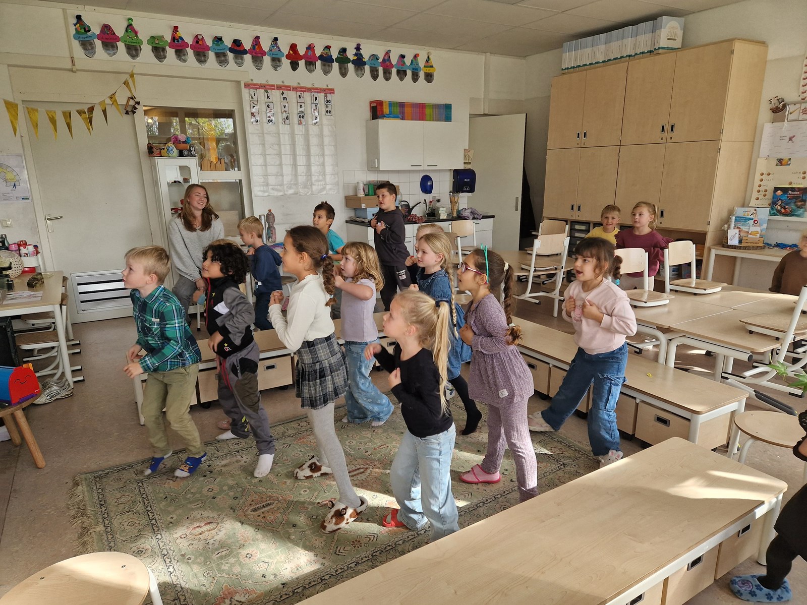 Groep 3 heeft al aardig wat letters leren lezen en schrijven: i, k, m, s, p, aa, r, e, v, n, t, ee, b, oo, d, oe, ij, z, h.