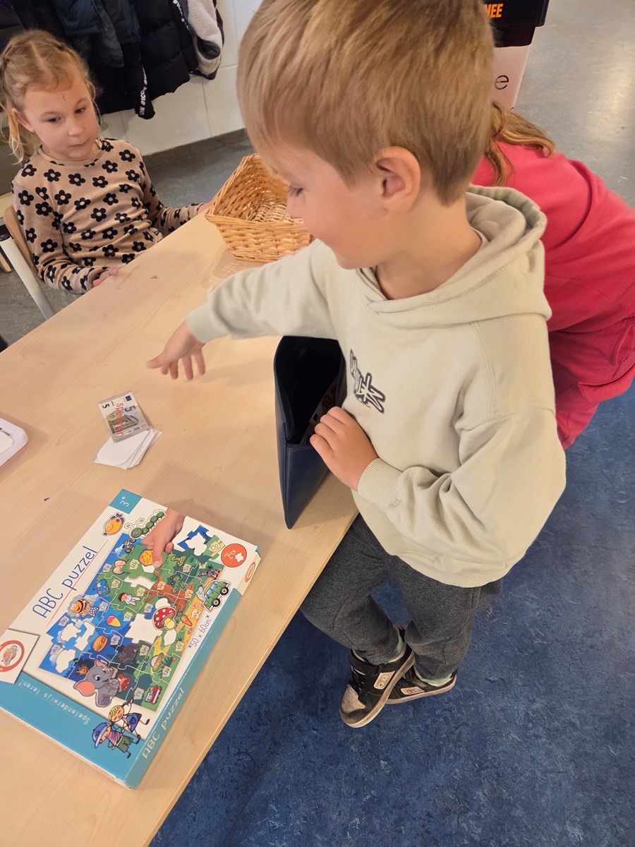 Groep 2 ging als echte bakkers aan de slag! Ze leerden een recept voor zoutdeeg schrijven met behulp van pictogrammen en maakten daarna natuurlijk ook het deeg voor bij de bakkerij. Daarnaast bedachten ze een prijslijst en vouwden ze zelf bakkerszakjes om al het lekkers in te doen. Groep 3 speelde samen met groep 4 in de speelgoedwinkel. Daar namen de kinderen onder begeleiding de rol van klant of winkelier op zich. In deze spelsituatie leerden ze gepast betalen, net als in het echt. Wat een mooie oefening in spelvorm!