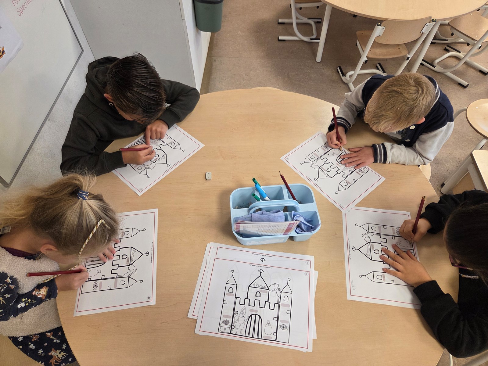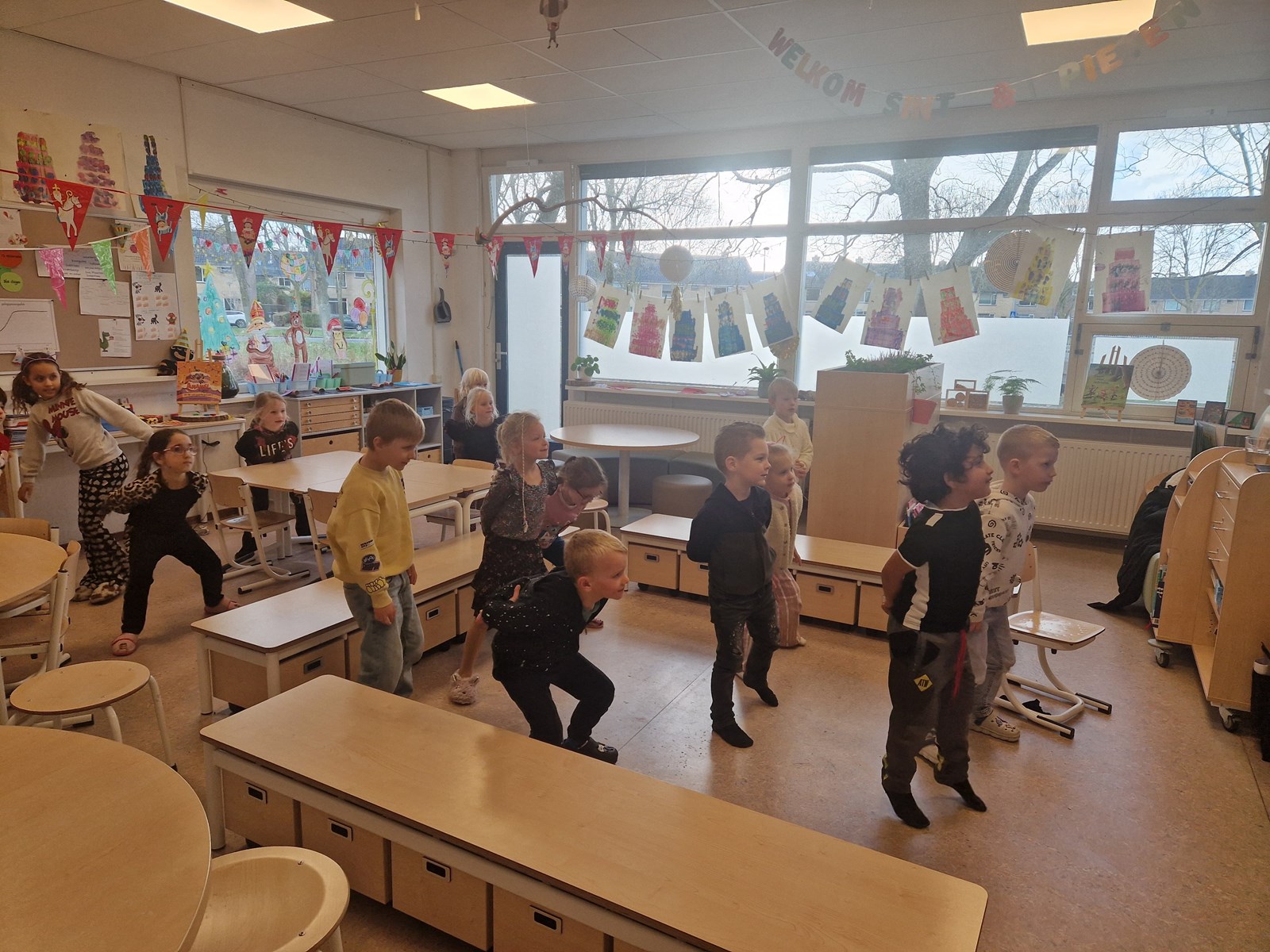 Elke dag kijken de groepen 1 en 4 gezellig samen met ons naar het Sinterklaasjournaal. Ondertussen zijn we druk aan het puzzelen met de gevonden puzzelstukjes — spannend hoor, wat zal het worden?