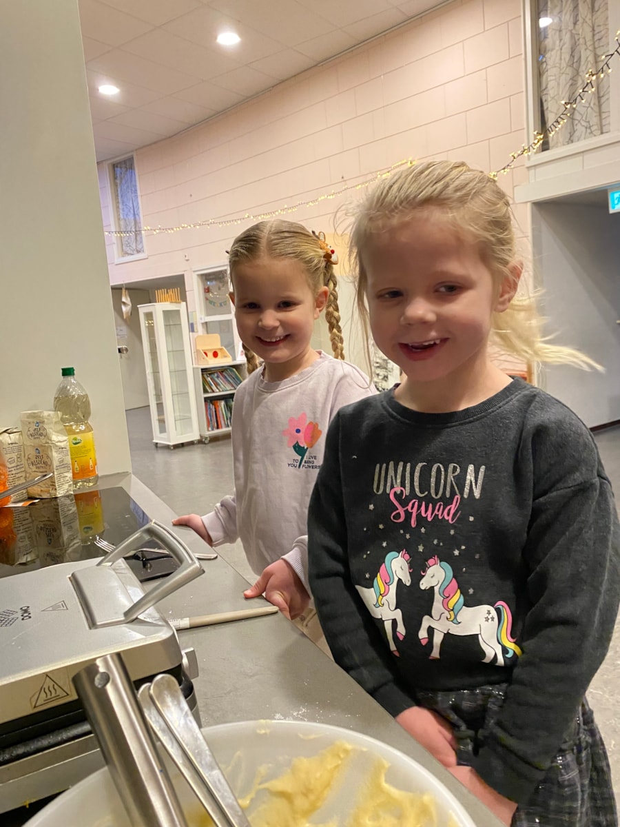 In de klas werd er druk getoverd: dun beslag veranderde langzaam in heerlijke, warme wafels.