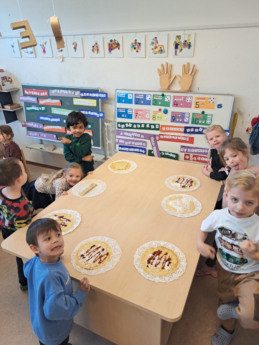 Vandaag was het ook nog Nationale Pannenkoekendag, wat een feest! Twee vaders hebben samen met de kinderen pannenkoeken gebakken en daarna hebben we heerlijk gesmikkeld en gesmuld. Ze waren zo lekker we lusten er eigenlijk nog wel veel meer! Bedankt voor jullie hulp vaders! meer foto’s kunt u zien onder het kopje pannenkoeken bij fotoalbums.